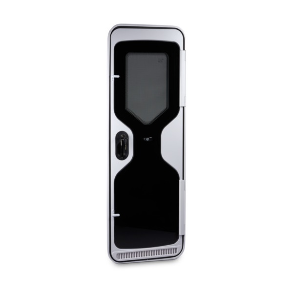 A durable caravan entry door with a right-hand hinge, designed for secure and convenient access. It features built-in ventilation and a clean trim finish, making it ideal for modern caravans and RVs.